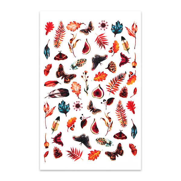Merülj el az őszi erdő varázslatos világában ezzel a lenyűgöző körömmatricával, amely az évszak esszenciáját hozza el a körmeidre!